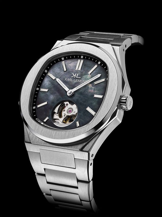 3月10日(火)午前10:00より、オンタイム・ムーヴ各店およびKARL-LEIMON公式オンラインストアにて同時発売。深みのあるブラックMOP(マザーオブパール)を採用した、数量限定モデルが登場。