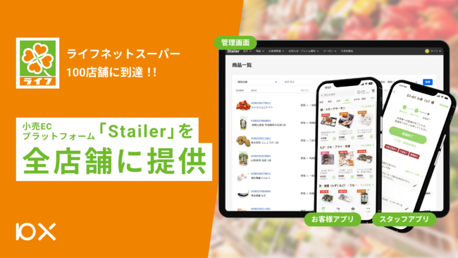 株式会社10X(本社:東京都中央区、代表取締役CEO 矢本 真丈、以下10X)は、同社が提供する小売ECプラットフォーム「Stailer(ステイラー)」が、首都圏と近畿圏で297店舗のスーパーマーケットを展開する株式会社ライフコーポレーション(以下ライフ)が運営する「ライフネットスーパー」全店舗に導入されたことをお知らせします。また、「ライフネットスーパー」は2023年3月15日に東有馬店でサービスを開始し、100店舗に到達しました。