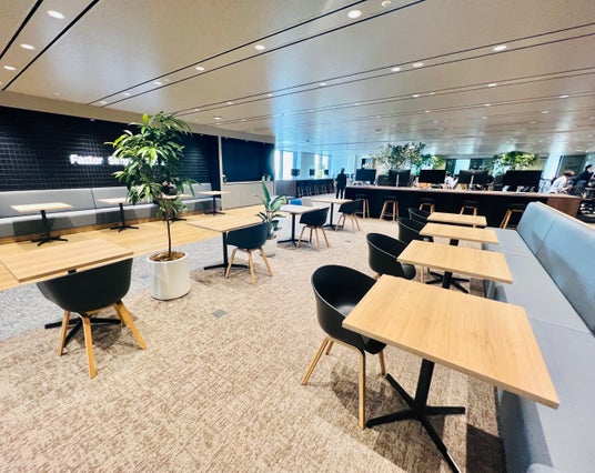また、入居したビルには、テナントが共同で利用可能な「ウェルビーイングフロア」が設けられており、そこのオープンフロアではテナント同士の交流も期待されています。