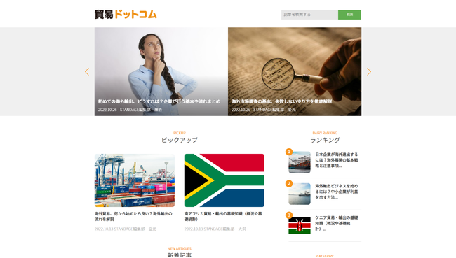 デジタル貿易プラットフォームの開発・提供を手がける株式会社STANDAGE(東京都港区、代表取締役社長:足立彰紀、以下スタンデージ)は、貿易に関する大小さまざまな疑問を解決するWEBメディア「貿易ドットコム」を、10月27日より公開しました。