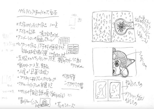 『Quo Psyche』についてのアイディア・メモとデザイン案. 田名網敬一氏の直筆.