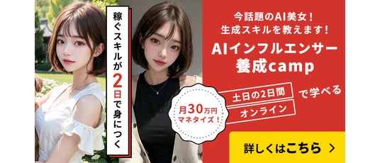 この講座は、土日の2日間でAI画像生成で、AIインフルエンサーを作ることができるようになる。AIインフルエンサーを作るだけでなく、AIインフルエンサーを用いたマネタイズの方法を初心者でも簡単に学べる内容となっている。
