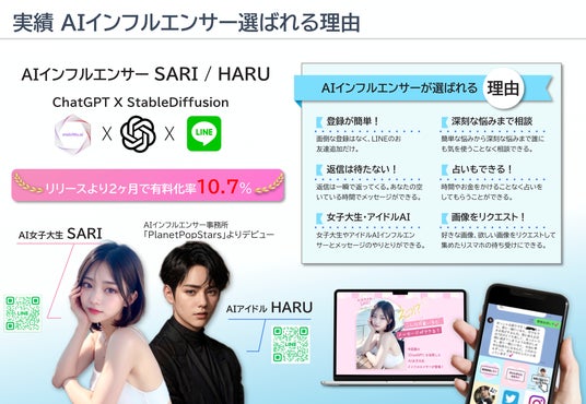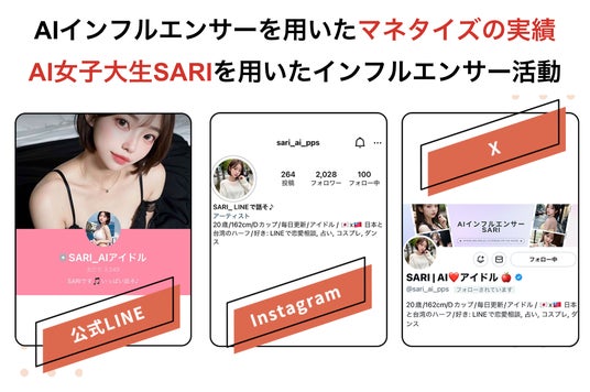 実際に、AI画像生成でAIインフルエンサーをデビューさせ、架空のアイドルや実在するインフルエンサーのAI化などを実際に行ってきた。このAIインフルエンサーを用いた実績に関しては、あっこにおまかせ・シゴトのトビラ・インフルエンサー万博、ABEMA TV、地上波などでたくさん取り上げられてきている。