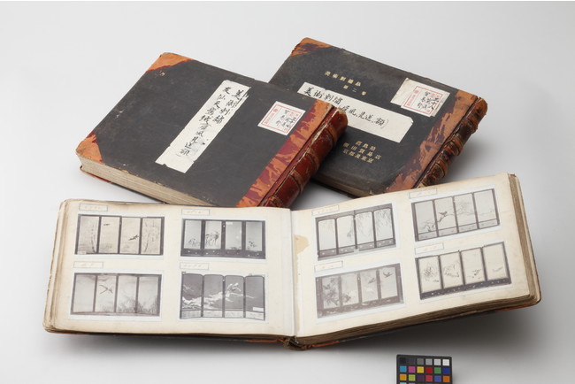 高島屋の輸出品の記録写真集(写真右、高島屋史料館蔵)には複数の獅子図の製品が確認でき、当時、この獅子は大変好まれたモチーフであったことが伺えます。