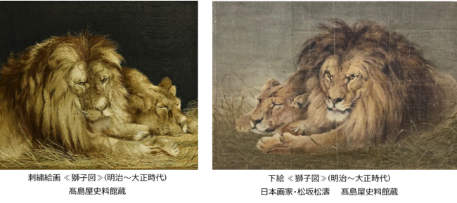 創業190周年を迎えた昨年、高島屋が明治から大正にかけて欧米に向け輸出した刺繍絵画≪獅子図≫が里帰りし、100年以上の時を超え、日本橋、大阪、京都で下絵≪獅子図≫と共に展示されました。