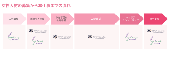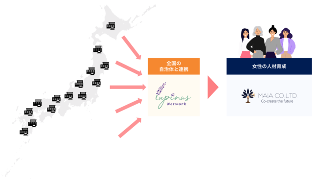 女性デジタル人材の育成において、ルピナスが得意とする地方自治体との連携・キャリアカウンセリングによるキャリアプランニングと、MAIAが得意とするデジタル人材の育成から就労支援をワンストップかつ一気通貫で提供できるようになります。
