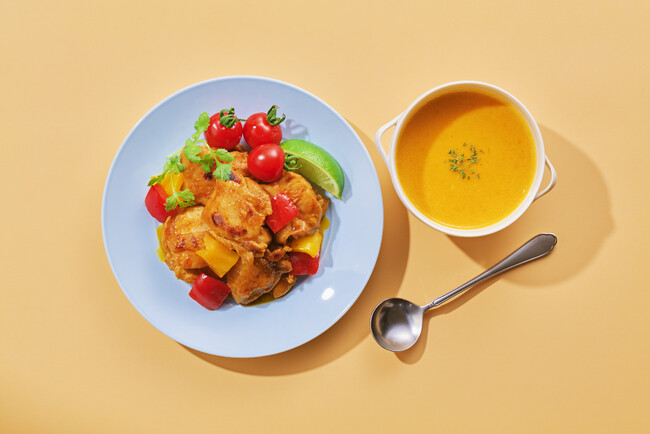 主菜:タンドリーチキン 副菜:かぼちゃのポタージュスープ