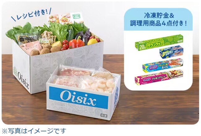 今回Oisixが販売する「冷凍つくりおき 5days by ちゃんとOisix」は、「冷凍貯金」を活用したレシピ付きの献立セットです。セット内には、大人2人分の平日5日分のメニューを作るための食材・レシピに加え、「冷凍貯金」や調理に必要な商品(サランラップ(R)・ジップロック(R)フリーザーバッグなど)も入っており、「冷凍貯金」がすぐに始められるようになっています。食材はOisixの有機野菜など安心安全なものを使用、レシピは時短料理研究家・若菜まりえさんが考案しており、彩りゆたかなメニューが作れます。休日にまとめて「冷凍貯金」しておくことで、平日の献立を考える、食材を買いに行く、調理をする時間を短縮することができ、平日の家事にゆとりがうまれるセットです。