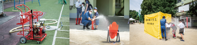 区内の避難所に配備されている「D級ポンプ(消火用ポンプ)」を使って、初期消火活動を体験しよう!