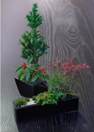 今回はその『彩花盆栽』のワークショップで、季節の苗が用意されています。「クリスマス盆栽」に挑戦することができます。