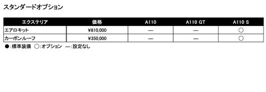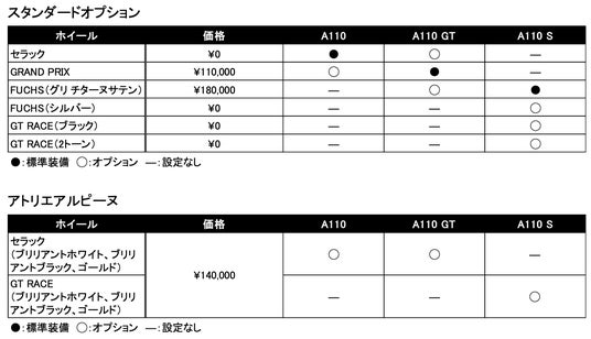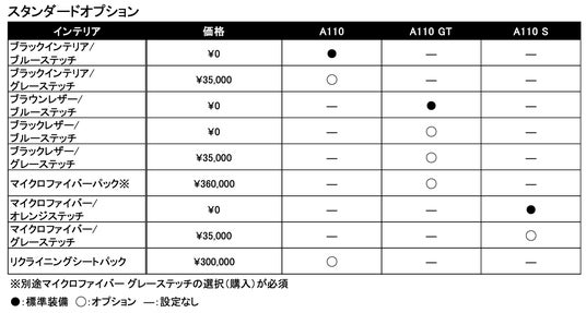 標準装備の仕様変更に伴い、アルピーヌ推奨オプションをあらかじめ組み合わせたエッセンシャルパッケージの内容も変更され、新価格となります。