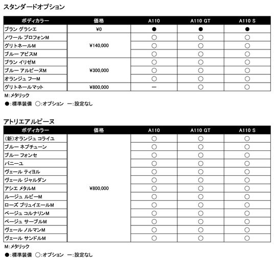 現在カスタマイズプログラムのアトリエアルピーヌで選べるボディカラーに新色のオランジュ コライユが追加され、バリエーションは全13色となりました。