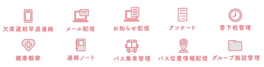 メール配信、アンケート、欠席・遅刻・早退連絡、バス不要連絡、連絡ノートなどの便利な機能を、1施設あたり月額9,000円(税抜)~というリーズナブルな価格でご利用いただけます。