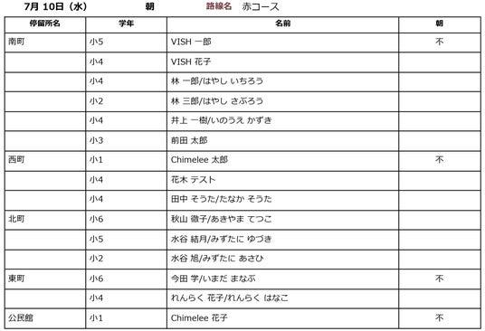 管理サイト上に登録された児童生徒情報をもとに、バス名簿が自動で作成されます。また、保護者から受信した児童生徒の欠席やバス不要といった情報もバス名簿に自動で反映されるため、手動で名簿を作成・変更する手間を省くことができます。