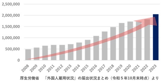 出展の背景には、日本国内での外国籍の労働者数の増加があります。現在、日本には200万人以上の外国籍の労働者が在籍しており、前年より約22万人増加している状況です。