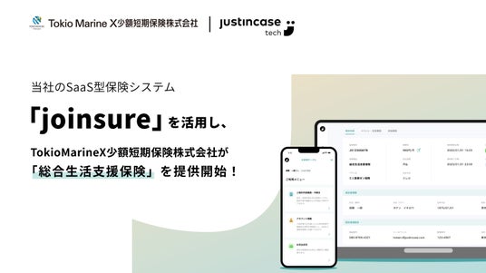 保険DXを推進する株式会社justInCaseTechnologies(本社:東京都中央区、代表取締役:畑 加寿也 以下「当社」)は、Tokio Marine X少額短期保険株式会社(本社:東京都中央区、取締役社長:宮谷 恒平、以下 「Tokio Marine X」)が、当社のSaaS型保険システム「joinsure(ジョインシュア)」を活用して Web完結型の生損保一体型保険「総合生活支援保険」を開発したことをお知らせします。