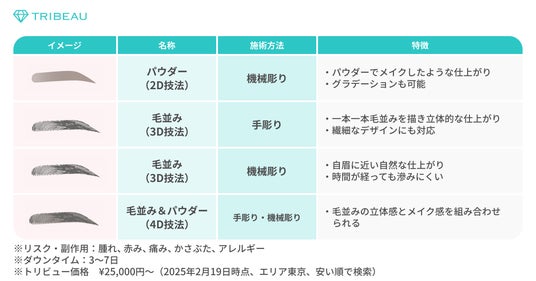 - 毛並み&パウダー(4D技法):4Dは、2Dと3Dを組み合わせた方法です。より自然で立体感のある仕上がりを希望する方は、4Dも検討してみてください。