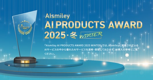 「AIsmiley AI PRODUCTS AWARD(アイスマイリー・エーアイ・プロダクト・アワード)」は、国内最大級のAIポータルメディア「AIsmiley」を運営するアイスマイリーが優れたAIプロダクトを審査、選考、表彰する催しです。