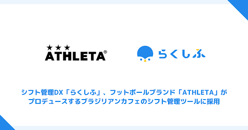 デスクレスワーカー向けのヒューマンマネジメントプラットフォームを提供する株式会社クロスビット(東京都品川区、代表取締役社長 小久保 孝咲 、以下「クロスビット」)は、フットボールブランド「ATHLETA」を展開する株式会社アスレタ(東京都墨田区、代表取締役 武石 一陽、以下「アスレタ」)がプロデュースするブラジリアンカフェの、シフト管理DXツールとして「らくしふ」が採用されたことをお知らせします。