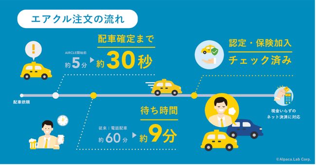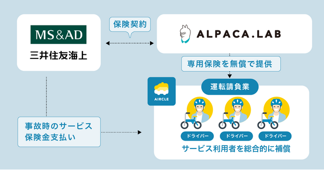アルパカラボは、運転代行配車プラットフォーム「AIRCLE※1」(以下「エアクル」)を利用し、「運転請負業※2」にて運行する自動車に対して、今回開発した専用保険を無償で付帯します。