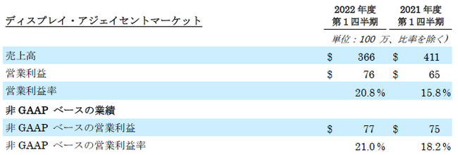 2022年度第2四半期の売上高見通しは、およそ63億5,000万ドル±3億ドルです。これにはサプライチェーンのひっ迫が続くと予想される影響も織り込まれています。非GAAPベースの希薄化後1株当たり利益は、1.75ドル~2.05ドルの範囲を予想しています。