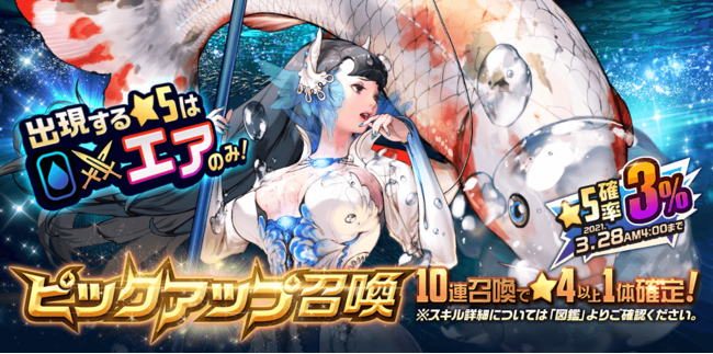 出現する★5チャイルドは、水属性攻撃型「エア」(CV.原由実)のみのピックアップ召喚開催 !