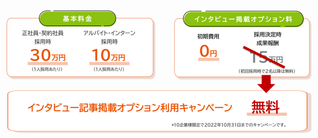 ・インタビュー実施・記事掲載後も、初回の採用決定時までは費用はかかりません。