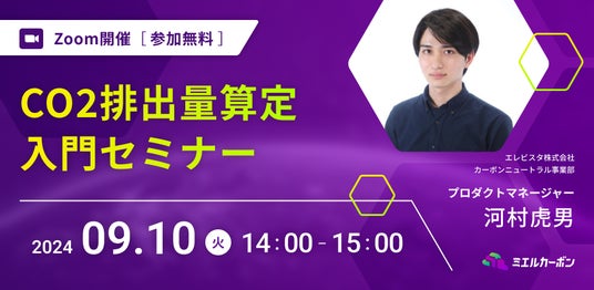 クライメートテックのエレビスタ株式会社は、9月10日(火)の14:00-15:00に、「CO2排出量算定 入門セミナー」を開催いたします。