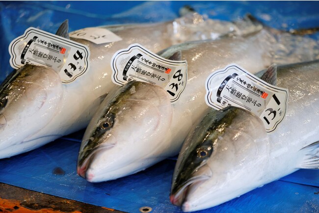 「天然能登寒ぶり」は、地元水産物の知名度向上を目的とした取組の先駆けとして、他県産寒ぶりとの差別化を図るため、平成18年に県下統一の呼び名として石川県漁協で決定したものです。冬の時期、中でも11月から翌年2月にかけて定置網で漁獲される7キロを超えるものを「天然能登寒ぶり」と呼び、ブランド化が進められています。この時期のぶりは特に脂が乗っており、石川県を代表する味覚の一つとして、冬のプライドフィッシュに登録しています。