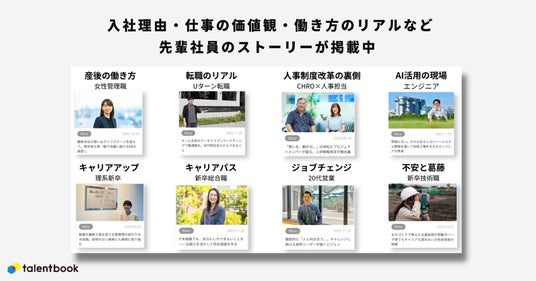 talentbook(タレントブック)はキャリアを学べるサイトです。就活中の大学生や社会人が、企業で働く社員(タレント)のストーリーで企業について深く知ったり、キャリア情報の提供により、より良いキャリア形成の実現をサポートします。