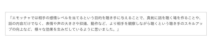 「 emotcha(エモッチャ)」は企業の社員研修として誕生しましたが、今回は図らずも教育現場でも活用する機会を得ることができ、香川県高松市立協和中学校の皆様には心から感謝いたします。