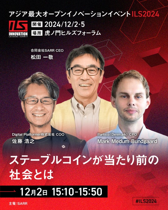 デジタルプラットフォーマー株式会社(東京都千代田区 代表取締役 松田一敬)のCEO松田とCOO佐藤が、2024年12月2日に開催されるInnovative Leaders Summit 2024(ILS2024)に登壇し、「ステーブルコインが当たり前の社会とは」にて講演を行います。
