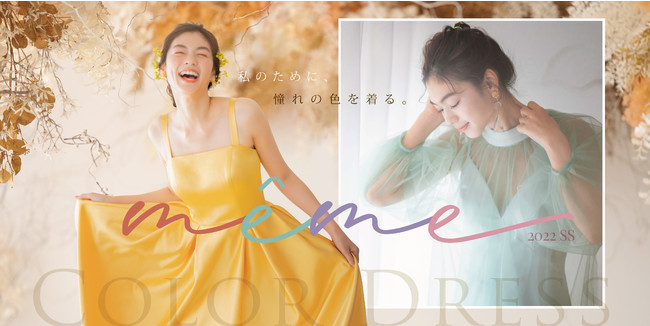この度、株式会社デコルテ(本社:兵庫県芦屋市、以下デコルテ)のオリジナルカラードレスブランド『meme(メーム)』をリリースしました。デコルテが運営するウェディングフォトスタジオ「スタジオAQUA/スタジオTVB/スタジオ8/スタジオAN/スタジオSUNS/スタジオSOLA」にて、撮影用衣装として予約受付を開始いたしましたのでご案内申し上げます。