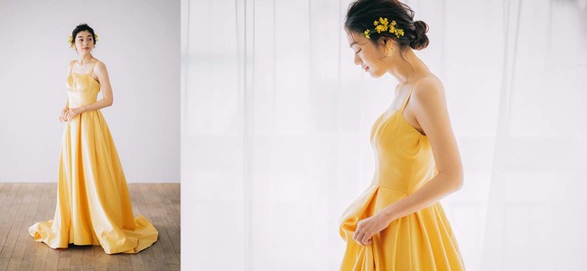 スタジオ撮影やロケーション撮影、さまざまなシーンに映えるよう、バリエーション豊富な全11色のカラードレスをご用意しました。対象店舗での撮影で着用が可能です。
