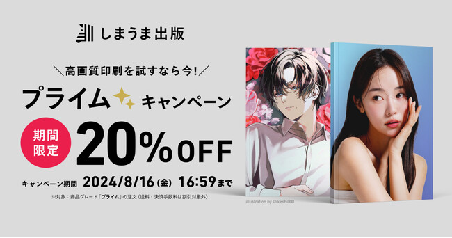 ネットプリントサービスを提供する株式会社しまうまプリント(本社:東京都新宿区、代表取締役社長:高橋 洋一郎、以下「しまうまプリント」)は、クリエイター向け冊子印刷サービス『しまうま出版』にて「プライム20%OFFキャンペーン」を、2024年7月22日(月)より開催いたします。