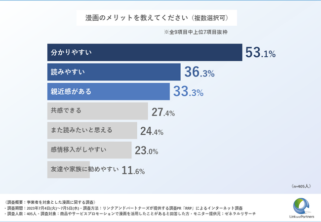 今回は、商品やサービスプロモーションで漫画を活用したことがあると回答した方405名を対象に、漫画に関する調査を実施いたしました。