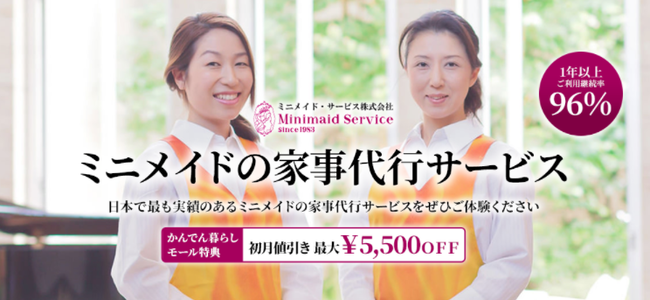ミニメイドサービスとは、専門教育を受けた家事のプロフェッショナルが、オーダーメイドで提供する日本でもっとも実績のある家事代行サービスです。