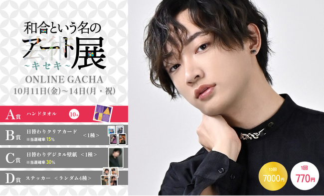 2024年10月11日から14日まで東京・館游彩で開催される、舞台や映像作品で活躍する日本の俳優であり、個性的な演技とアートに対する情熱で知られている和合真一による展示イベント「和合という名のアート展~キセキ~」にて、来場者限定のオンラインガチャの販売が決定いたしました。