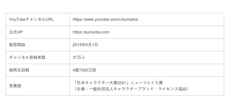 クマーバチャンネルは、お子様がキャラクターと一緒に楽しく成長できるエンタメ知育チャンネルです。「未就学児の想像力と表現力を豊かにし、可能性を広げる」ことをテーマにコンテンツを制作しています。YouTubeで良質なコンテンツを配信することで、いつでもどこでも楽しみながら心身ともに成長できることを目指しています。