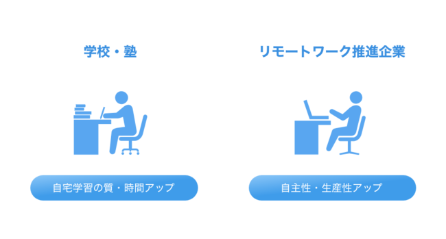 といった悩みを解決するため、学校や塾、リモートワーク推進企業などでの活用が考えられます。