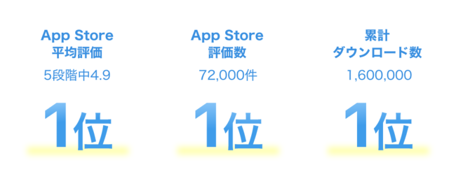 その結果として、以下の全ての項目において、国内1位の集中アプリとなっています。