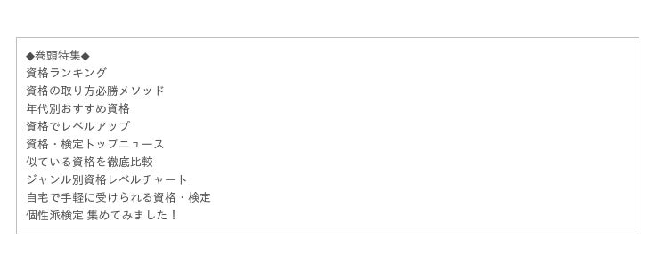 巻頭特集では、勉強時間やオススメ資格の紹介に触れ、資格取得の道しるべとなる内容になっております。