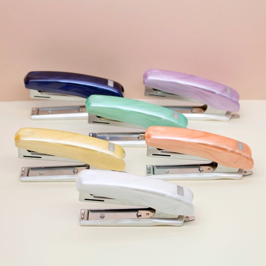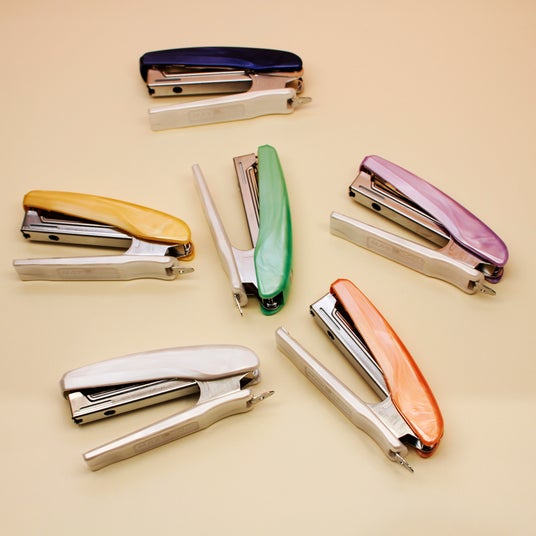 当社のスタンダードホッチキスに、シリコン雑貨ブランドp+g design(ピージーデザイン) がデザイン監修したオリジナルデザインのカバーを装着しています。
