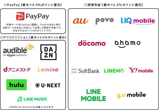 ※表中に「-」と表示されている還元率は通常ポイント(0.5%~1.0%)を指します。