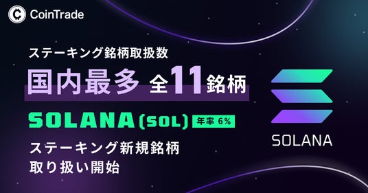 株式会社マーキュリー(本社:東京都渋谷区 代表取締役社長:都木 聡、以下、「当社」)は、当社の提供する暗号資産販売所「CoinTrade(コイントレード)」において、ソラナ(SOL)、ジパングコイン(ZPG)、ジパングコインシルバー(ZPGAG)、ジパングコインプラチナ(ZPGPT)の4銘柄の取り扱いを2024年3月28日に開始することをお知らせいたします。また、暗号資産運用サービス「CoinTradeStake(コイントレードステーク)」においてソラナ(SOL)のステーキングサービスも同時に開始いたします。