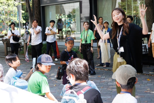 参加した子どもたちは4つのグループに分かれ、まずは三菱地所株式会社が取り組むまちづくりや、丸の内ストリートパークの取り組みを学び、実際にまち歩きをして人々の過ごし方を観察しました。