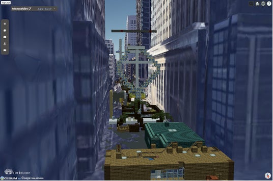 torinome Web上の丸の内に設置された、子どもたちがマインクラフトで作った未来の丸の内を設置した様子