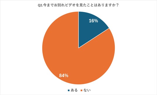 「今までお別れビデオを見たことはありますか?」という質問に対しては「ある」と答えた人は全体の16%にとどまり、84%が「ない」と回答しました。つまり、お別れビデオに対する興味関心はあるものの、実際の視聴体験はまだ広く浸透していないことが明らかになっています。
