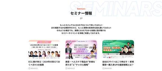 「ECのプロ」では定期的にECご担当者さま向けに様々なイベントやセミナーを開催しております。この度、より鮮度の高い情報を皆様にお届けすべく、ホームページ上にセミナー情報の掲載を始めました。