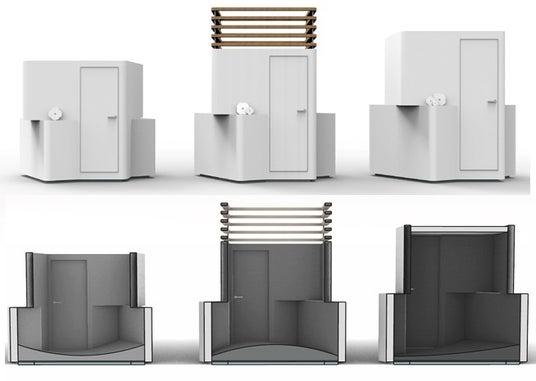 ディバイスの持ち込み禁止等、少し仕事から離れ、人の目を気にする事なくセルフメンテナンスを目的としたこのブースは、同事業内のプロジェクトであるオールジェンダートイレの考え方「後ろめたさの解消」を実現するため、休憩スペースがエリアで区切られているのではなく、通常執務するオフィス内に設置され、入口と出口を分ける事で使用者同士が顔を合わせないで済むようになっています。